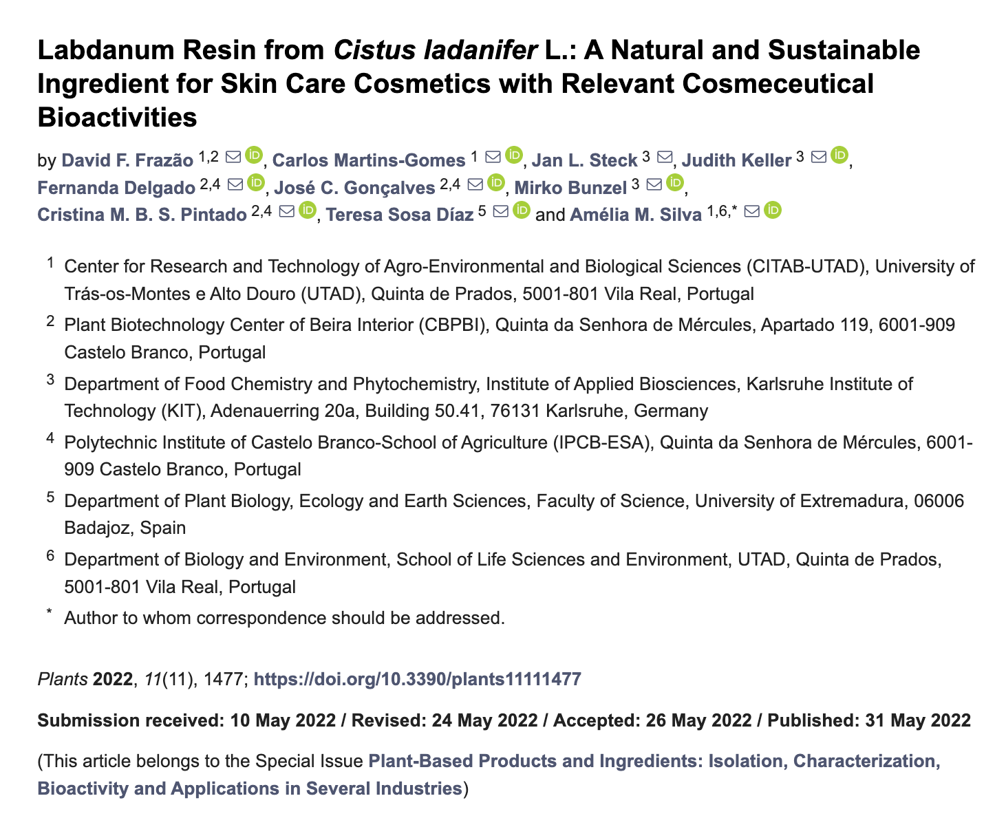- Frazão, D.F., Roque-Da-Silva, Â., Carvalho, R.A., et al., 2022. Labdanum resin from Cistus ladanifer L. as a source of bioactive compounds: Neuroprotective and antioxidant potential. Plants, 11(11), 1477. Available at: https://www.mdpi.com/2223-7747/11/11/1477